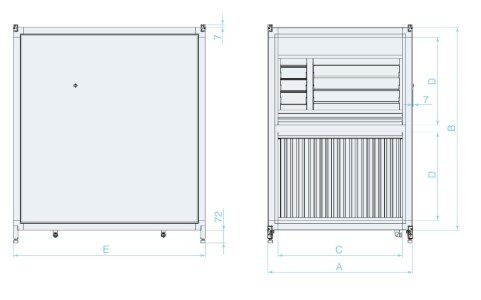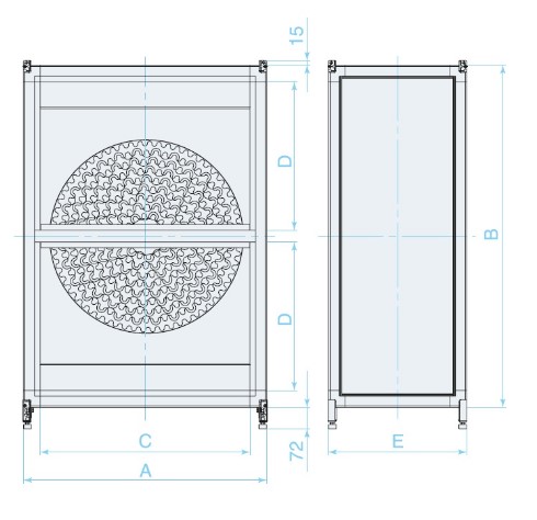 | Типоразмер | A, мм | B, мм | C, мм | D, мм | E, мм | Масса, кг | Номер аэродинамической кривой |