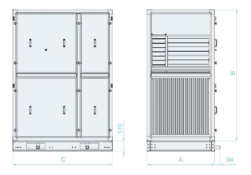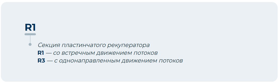 Секция пластинчатого рекуператора представлена шестью типоразмерами в двух исполнениях: секция R1 со встречным движением потоков приточного и вытяжного воздуха; секция R3 с однонаправленным движением потоков приточного и вытяжного воздуха. Передача теплоты происходит от теплого воздуха к более холодному через твердую стенку, разделяющую два потока воздуха. Поверхность теплообменника рекуператора образована пакетом алюминиевых пластин, между которыми происходит перекрестное движение приточного и вытяжного воздуха. КПД рекуперации достигает 70%. Все секции стандартно оснащены профильным пластиковым каплеуловителем и поддоном с патрубком для сбора и слива конденсата с наружной резьбой G1 1/2” . На рекуператоре установлен внутренний обводной канал с воздушным клапаном, с помощью которого можно направить наружный воздух мимо теплообменной вставки для: защиты рекуператора от обмерзания; предотвращения нежелательной рекуперации (как правило, летом).