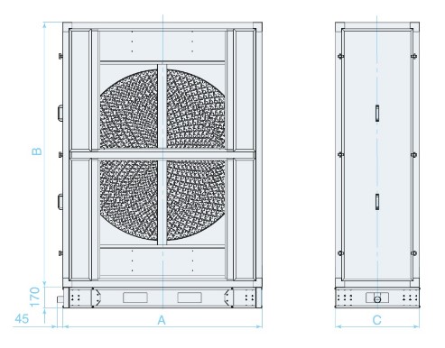 Секция представлена шестью типоразмерами. Нагрев холодного приточного воздуха осуществляется за счет аккумуляции теплоты вытяжного воздуха на поверхности теплообменника с последующей ее отдачей. Поверхность теплообменника образована вращающимся барабаном из волнообразных алюминиевых лент. В роторных регенераторах возможен небольшой переток между потоками воздуха. Щеточное уплотнение, размещенное по ободу ротора и на линии раздела, снижает переток воздуха. Все секции стандартно оснащены поддоном с патрубком для отвода конденсата с наружной резьбой G1 1/2”. Вращение ротора осуществляется через ременную передачу трехфазным асинхронным двигателем. Двигатель подключается к внешнему частотному регулятору оборотов для достижения максимального КПД, а также при возникновении опасности замерзания конденсата на роторе теплообменника система автоматически снижает скорость вращения, что позволяет прогревать поверхности, на которых выпадает иней. Кроме того, при необходимости частотным регулятором оборотов можно ограничить степень теплоутилизации.