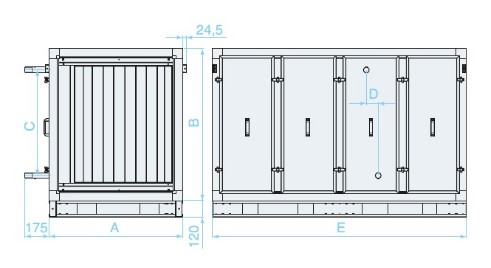 Секция А1/2 фильтрование EU4 + водяной нагрев + вентилятор