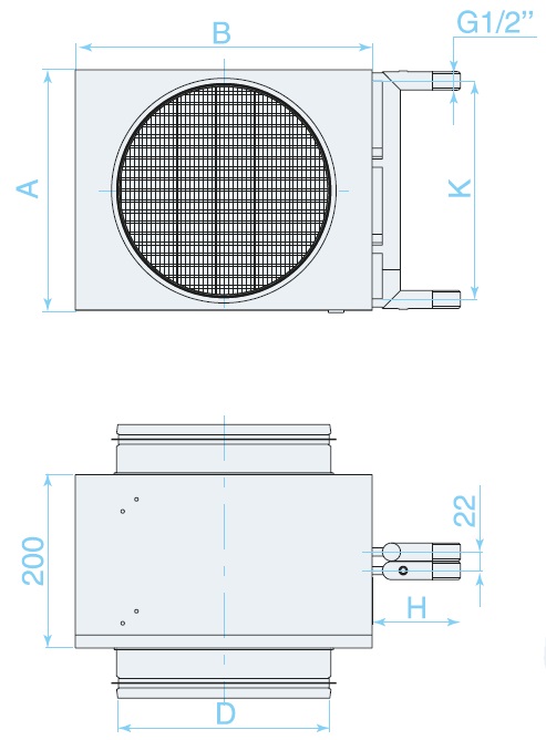 Нагреватель SKH-W представлен четырьмя типоразмерами в двухрядном исполнении. Предназначен для эксплуатации при максимальном рабочем давлении 1,5 МПа и максимальной рабочей температуре теплоносителя 150°C. В качестве теплоносителя рекомендуется использовать воду или незамерзающие смеси. Корпус изготовлен из оцинкованного стального листа. Поверхность теплообменника изготовлена из алюминиевых пластин толщиной 0,2 мм и проходящих через них в шахматном порядке медных трубок диаметром 9,52 мм. Трубные коллекторы из стали имеют резьбовые патрубки для обезвоздушивания теплообменника и слива теплоносителя. Все теплообменники испытываются на герметичность водой под давлением 20 Атм в течение 10 минут.