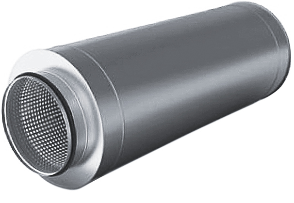 Трубчатый шумоглушитель предназначен для снижения уровня шума от вентиляторов. Максимальная температура перемещаемого воздуха составляет 70°С. Шумоглушитель выполняется в виде двух круглых воздуховодов из стального оцинкованного листа, вставленных один в другой. Пространство между наружным (гладким) и внутренним (из сетки) воздуховодами заполнено звукопоглощающим материалом (базальт кашированный). Монтаж шумоглушителя можно осуществлять в любом положении. Потеря давления на шумоглушителе трубчатого типа та же, что и на эквивалентном участке круглого воздуховода.