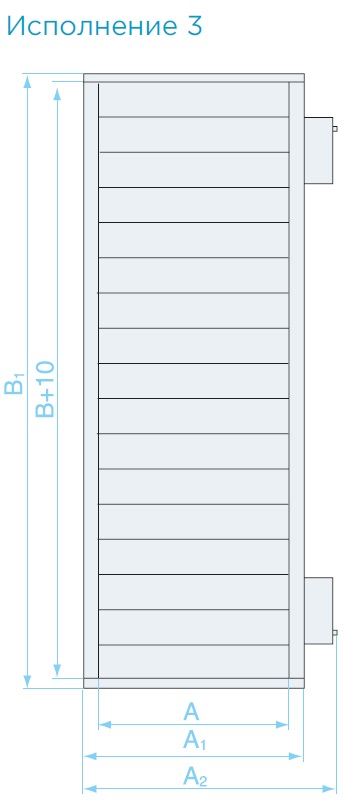 В алюминиевой заслонке длина всегда постоянна и равна 125 мм. При высоте заслонки B не кратной 100 мм, оставшаяся часть перекрывается полосой оцинкованной стали.