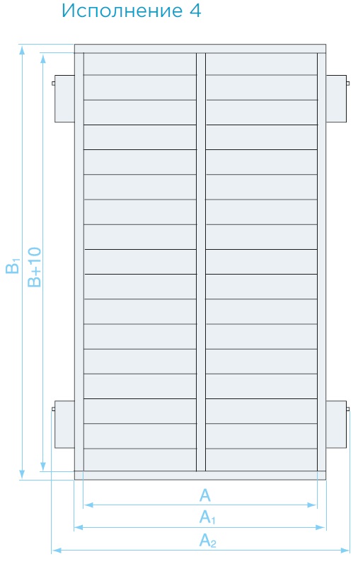 Фактический размер высоты внутреннего сечения клапана отличается от его типоразмера В на 10 мм и равен B+10.