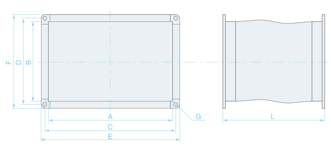 Гибкая вставка предназначена для предотвращения передачи вибраций от вентилятора к воздуховодам и для обеспечения герметичного гибкого стыка, который выдерживает высокое давление. Гибкую вставку нельзя использовать в качестве несущей конструкции при монтировании ее в систему во избежание выхода из строя вследствии чрезмерной механической нагрузки. Два фланца из оцинкованного стального листа, соединённые между собой гибким рукавом из ПВХ. Монтаж в любом положении.