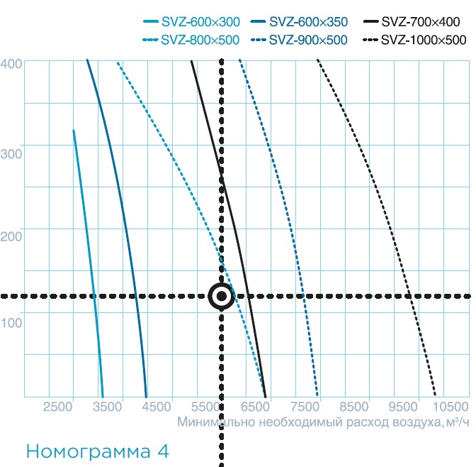 необходимый расход воздуха (номограмма 3–4)