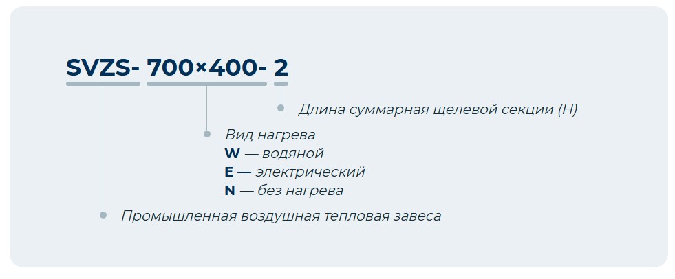 Защищает помещения от холодного воздуха. Вертикальное или горизонтальное размещение. Высота или длина перекрываемого проема от 2 до 5 м. Площадь проема, перекрываемого одной завесой, не более 16 м². Завесы трёх типов: с водяным, электрическим нагревом и без нагрева. Шесть типоразмеров, расход воздуха от 3 075 до 9 100 м³/час. Щелевые секции длиной 1 и 1,5 м и воздухозаборная решетка из оцинкованного стального листа.