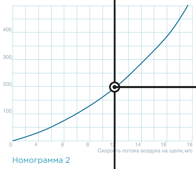 4 — Скорость потока воздуха на выходе (номограмма 2)
