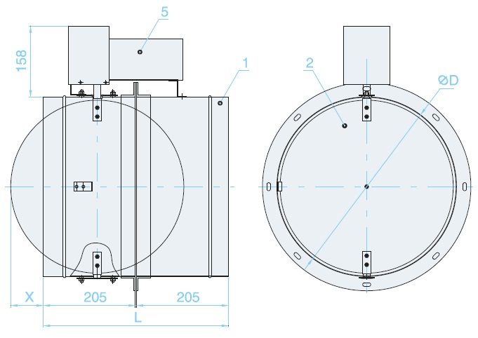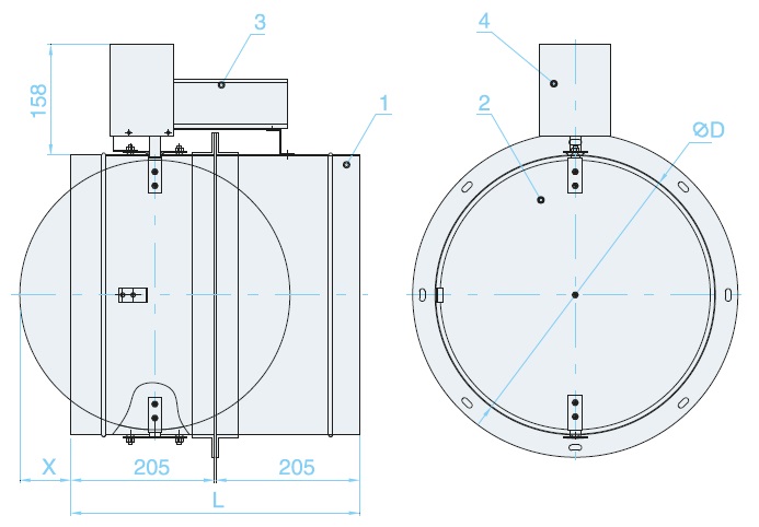 Минимальный диаметр клапана с электромеханическим и электромагнитным приводом — Ø100. Необходимо обратить внимание, что потери давления на клапанах Ø100, Ø125, Ø140, Ø160 относительно велики, поэтому их применение должно иметь технико-экономическое обоснование. В большинстве случаев рекомендуется применять клапаны минимальным диаметром 200 мм.