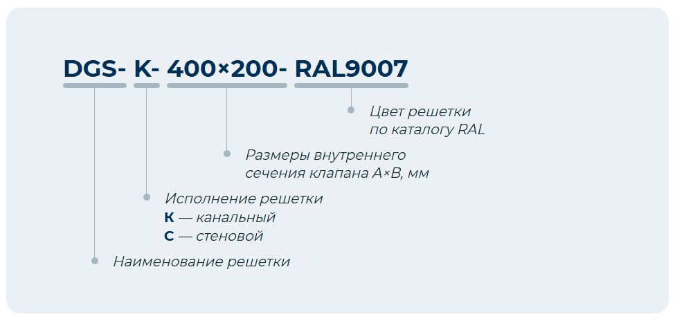 Решетка декоративная DGS применяется в качестве дополнительного аксессуара к клапанам DKS (КДМ-2м). Особенностями данной решетки являются низкое аэродинамическое сопротивление, улучшенный дизайн, простота конструкции. Стандартный цвет — белый RAL9016. По желанию заказчика возможна окраска в любой цвет по каталогу RAL. Решетка крепится к стене видимым болтовым соединением.