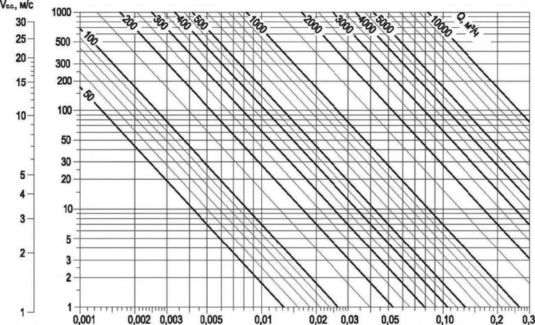 Vc. c. – скорость в свободном сечении м / с