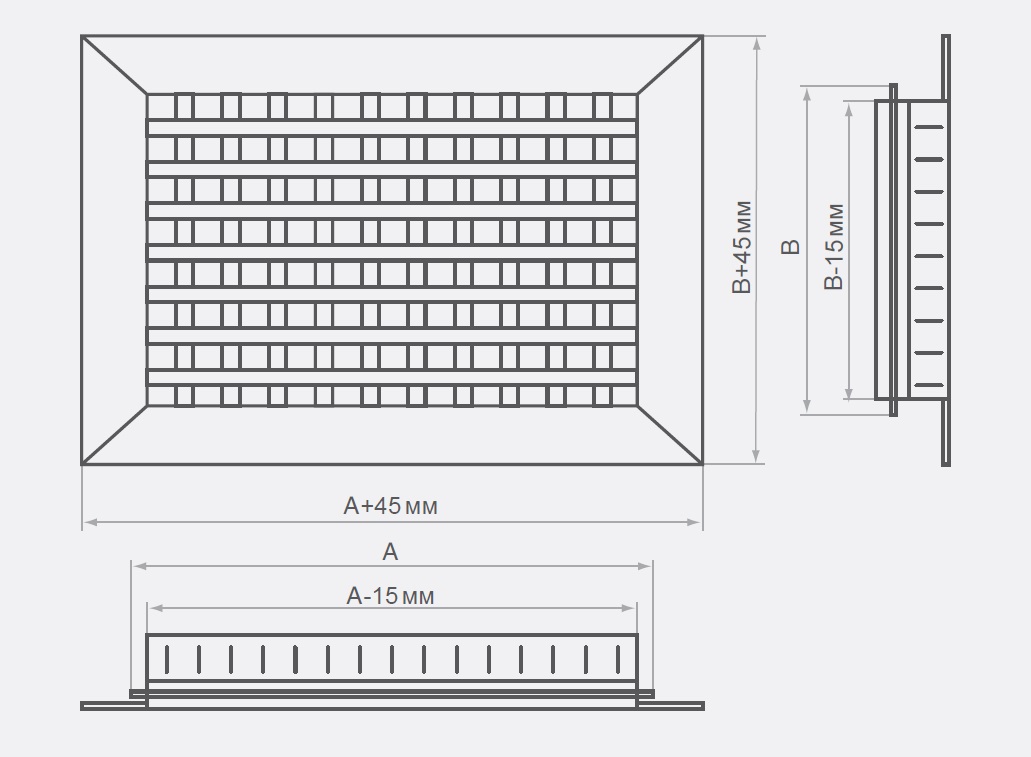 Стандартный цвет покрытия — белый RAL 9016 при заказе не указывается (возможно окрашивание в любой другой цвет, согласно каталогу цветов RAL). Минимальный размер решетки 100×100.