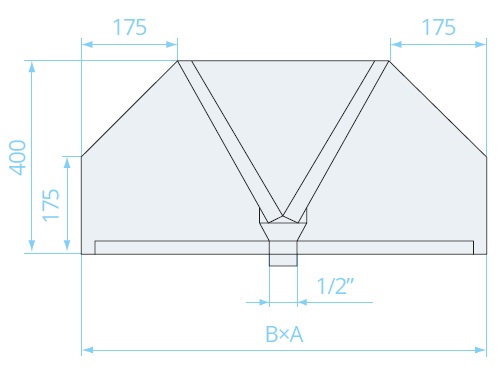 Стандартная высота зонта 400 мм. По умолчанию зонты изготавливаются без выходных патрубков. Диаметр выходного патрубка при необходимости согласовывается при заказе, но не может превышать 630 мм. По специальному заказу возможно изготовление зонтов других размеров.