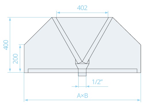Стандартная высота зонта 400 мм. По умолчанию зонты изготавливаются без выходных патрубков. Диаметр выходного патрубка при необходимости согласовывается при заказе, но не может превышать 630 мм. По специальному заказу воз‐ можно изготовление зонтов других размеров.